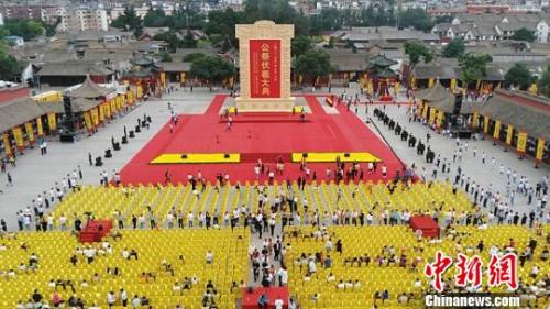 惟公元二零一八年六月二十二日,岁在戊戌(wù xū),时值夏至。中华儿女,汇聚羲皇故里天水,谨以太牢之礼,鲜花雅乐之仪,虔敬之心,致祭于中华人文始祖太昊伏羲氏。