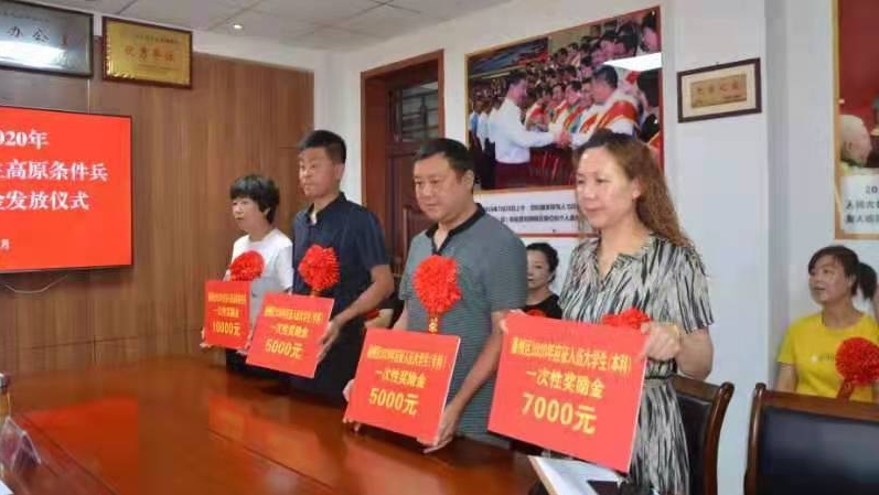 7月13日,秦州区人武部、秦州区退役军人事务局组织了2020年应征入伍大学生和高原条件兵一次性奖励金发放仪式。