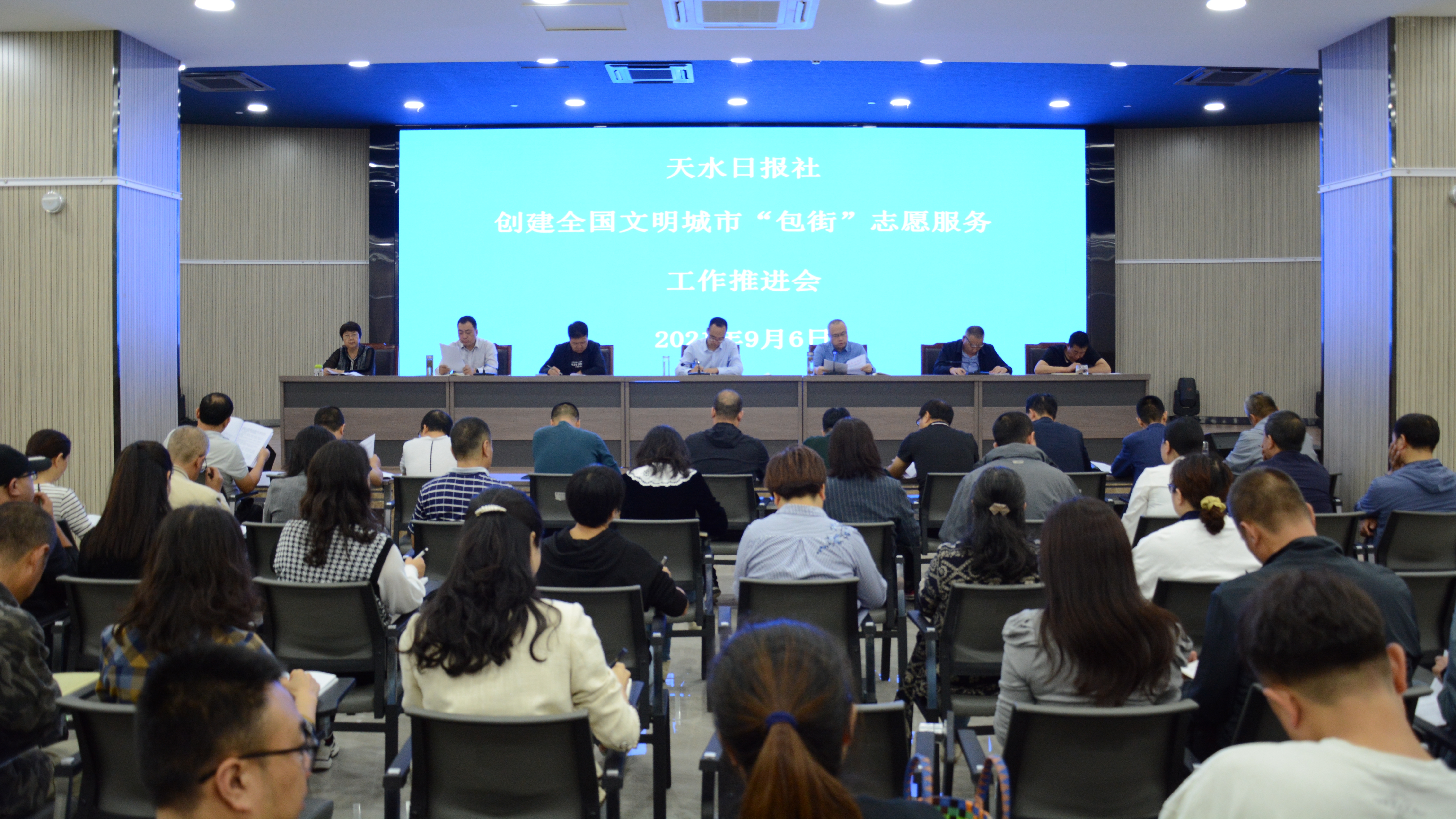 为认真贯彻落实全市创建全国文明城市“包街包巷包小区”责任制落实暨志愿服务活动启动大会精神,9月6日,天水日报社召开创建全国文明城市“包街”志愿服务工作推进会,安排创建全国文明城市志愿服务活动工作重点。