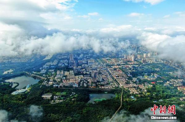 9月6日,航拍南京主城区,天空云雾缭绕似“仙境”。