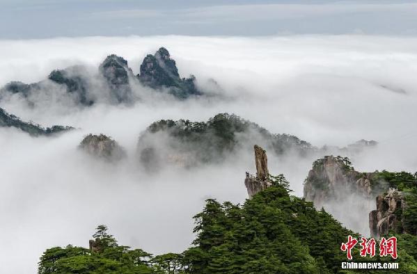 6月25日,安徽黄山风景区经历一场雨水洗礼后,绵延起伏的山峦沉浸在云雾之中,漫山树木青翠欲滴。