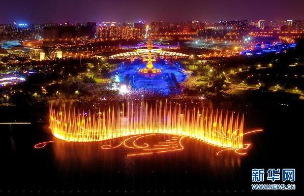 河北唐山:南湖灯光水舞秀启幕