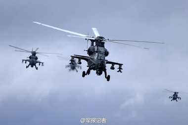 解放军武直-10机群演练...