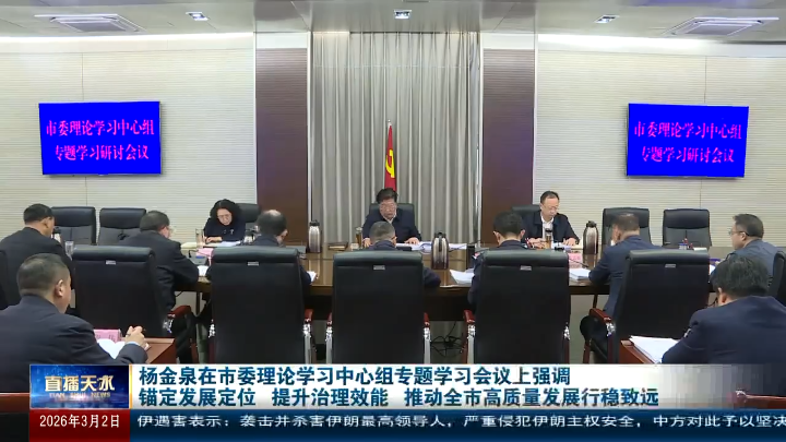 直播天水|杨金泉在市委理论学习中心组专题学习会议上强调 锚定发展定位 提升治理效能 推动全市高质量发展行稳致远