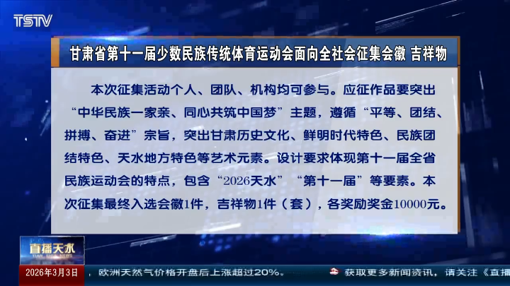 直播天水|甘肃省第十一届少数民族传统体育运动会面向全社会征集会徽 吉祥物