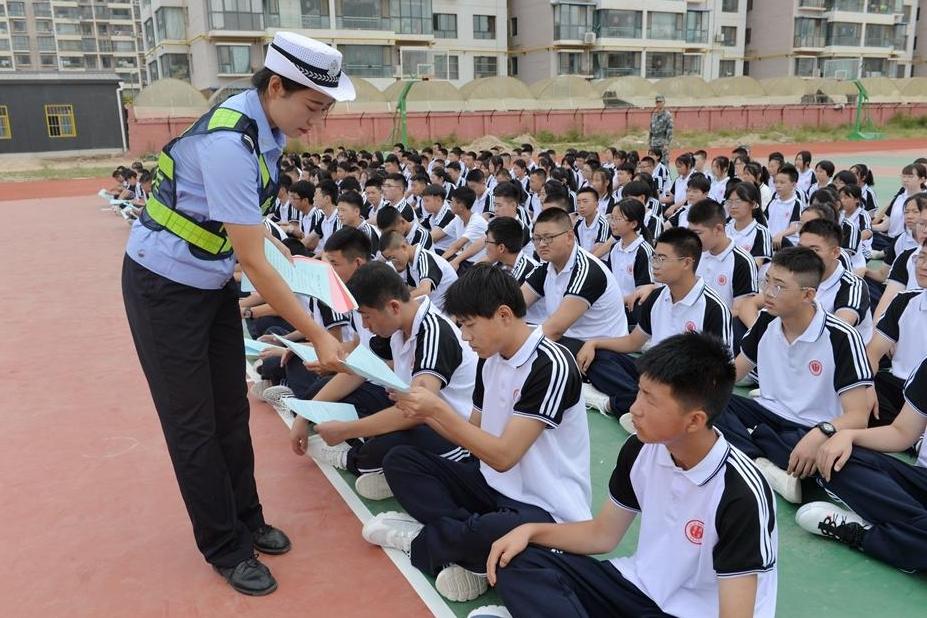 8月16日上午,秦安县公安局交警大队以学校军训为契机,组织民警走进辖区民生中学开展交通安全宣传进校园活动。