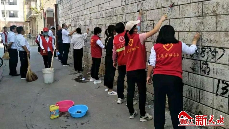 9月13日,天水市公安局秦州分局北关派出所联合社区,组织志愿者对辖区内三无小区环境进行彻底清理。