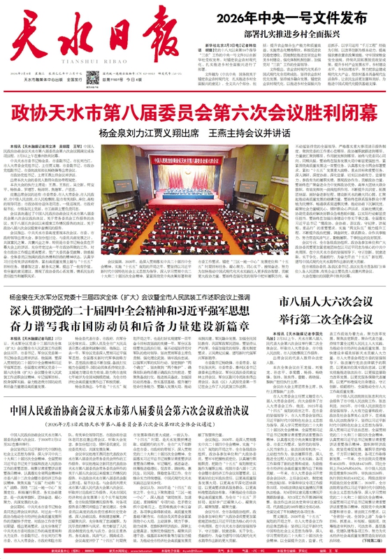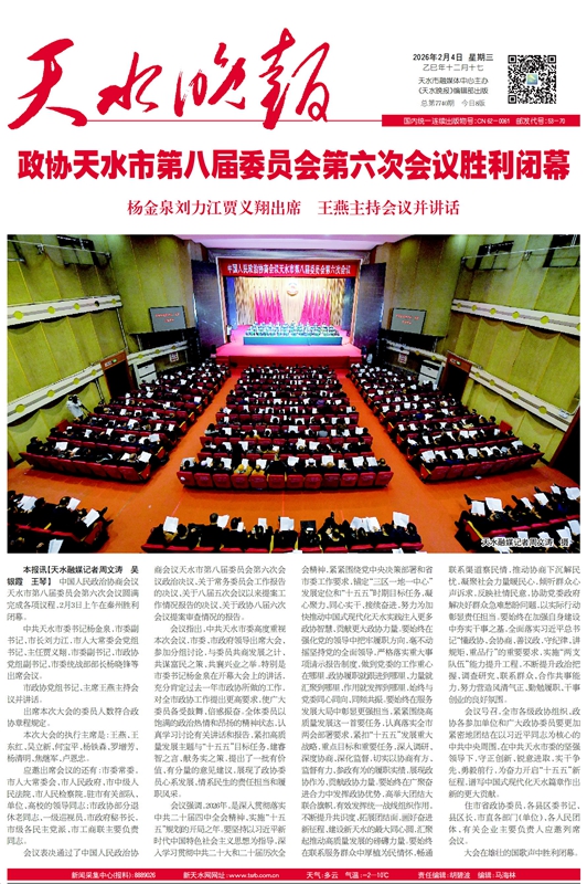 政协天水市第八届委员会第六次会议隆重开幕 杨金泉讲话 刘力江贾义翔出席 王燕作报告