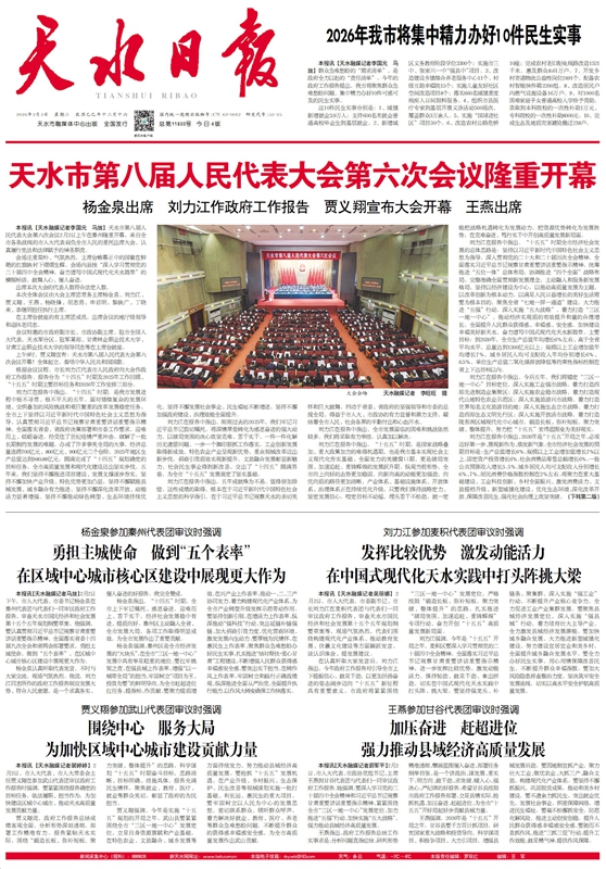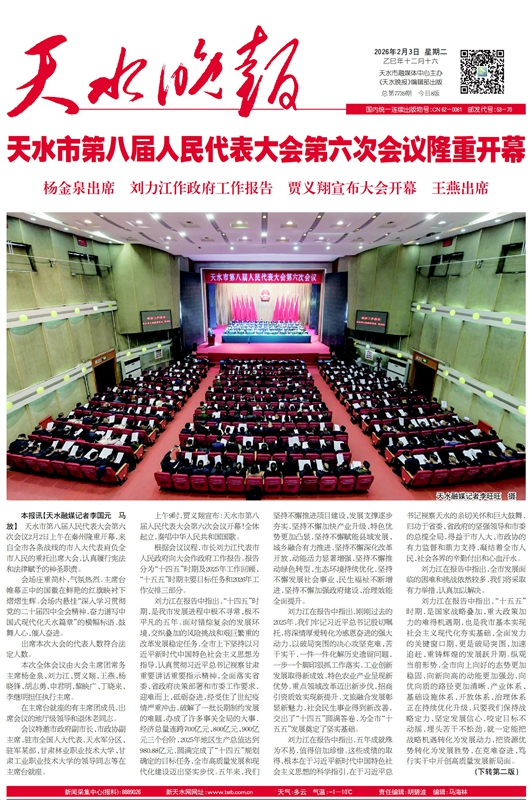 天水市第八届人民代表大会第六次会议隆重开幕 杨金泉出席 刘力江作政府工作报告 贾义翔宣布大会开幕 王燕出席