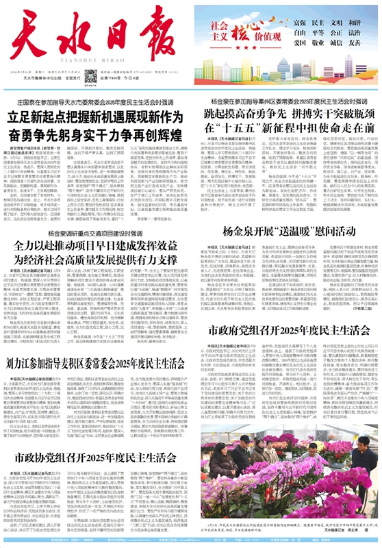 杨金泉参加指导秦州区委常委会2025年度民主生活会