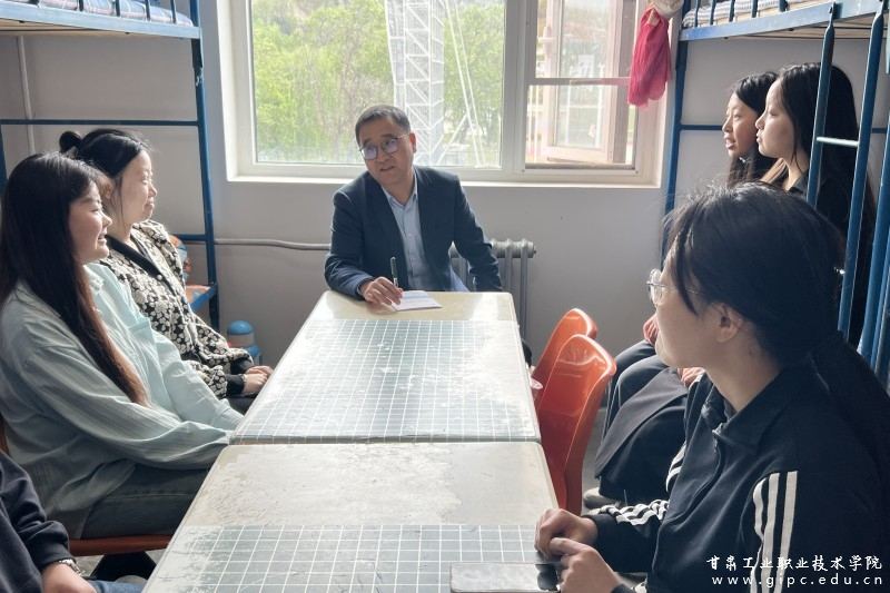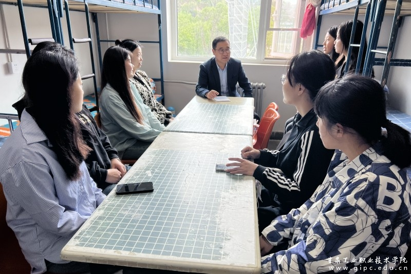 新天水讯 为进一步了解学生的思想、学习和生活状况,5月6日中午,甘肃工业职业技术学院副院长胡森林深入学生公寓,调研走访并慰问旅游学院空乘2231班学生,和学生面对面进行了亲切交谈。