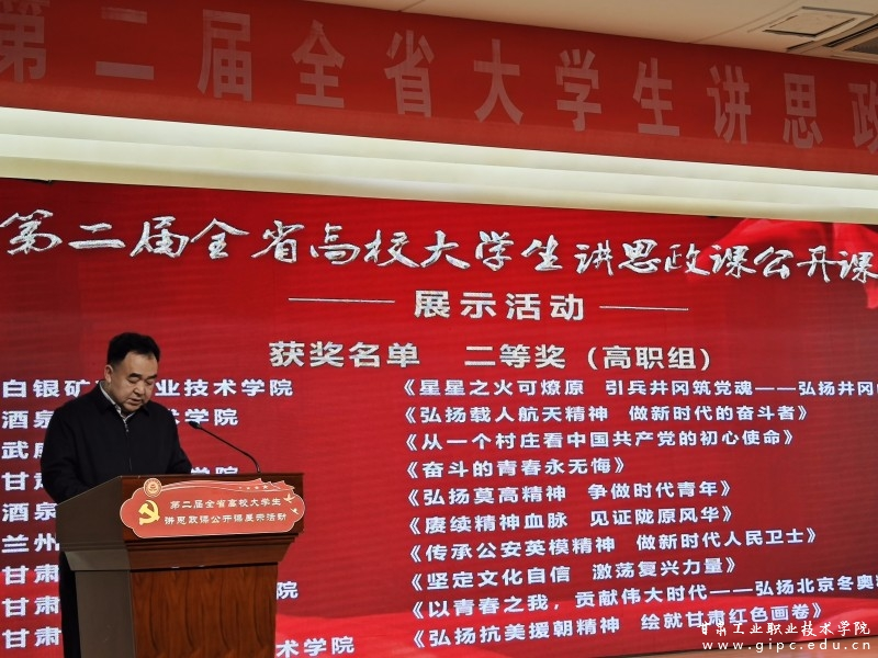 通过此次比赛,展现了甘工院学子与时代共振、与祖国同行的热情,同时也引导广大学生热爱思政课、学好思政课,争做有理想、敢担当、能吃苦、肯奋斗的新时代好青年,把爱国情、强国志、报国行自觉融入全面建设社会主义现代化和幸福美好新甘肃的火热实践中。