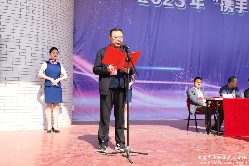 党委副书记、院长安建平致开幕辞。他指出,在推动职业教育改革、加快学校发展的实践中,就业工作发挥着“稳定器”“助推器”等至关重要的作用。近年来,在推动就业工作的实践中,甘肃工业职业技术学院立足产教融合,与诸多知名企业一道共同努力,在人才培养、现代学徒制改革、毕业生就业等方面取得了显著成绩。安建平向积极参与本次双选会的各企事业单位表示衷心感谢,并祝愿所有同学拿出青春最好的状态,积极应聘,顺利找到适合自己的工作,迈出人生重要的一步!希望各用人单位选聘到自己所需的人才,达到“校企合作,双赢共进”的目的。同时希望合作企业与学校一起融入产业、助力经济、服务区域,共创产教融合新篇章和双方特色发展新局面!
