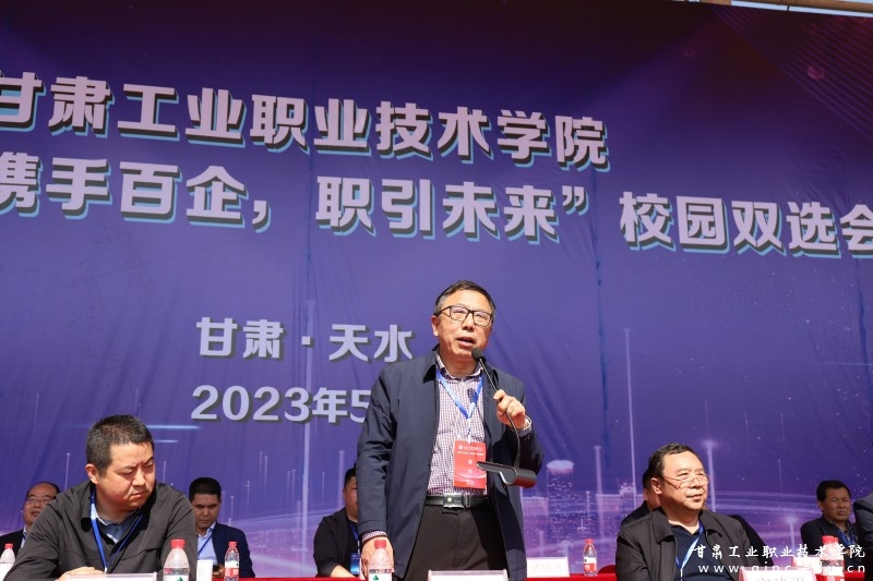 天水市人社局副局长刘宇代表天水市校地就业联盟致辞。他强调,企业是用工的主体,学校是人才的摇篮。甘肃工业职业技术学院举办此次招聘会,搭建平台,做好“红娘”工作,解决了企业招聘难的问题,为同学们实现更好的就业提供了更多的选择,达到了共赢的局面。