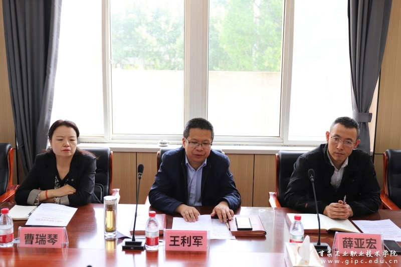 王利军简要介绍了甘肃工业职业技术学院办学历史沿革、学校荣誉、专业设置、师资水平等方面情况,并表示,两校办学背景相近、专业重合度较高,在学校发展与专业改革的过程中存在许多共性,此次调研也是促进两校在各专业领域开展深度合作的良好契机。