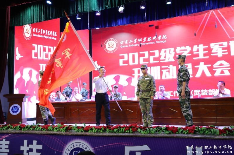 会上,坚葆林向甘肃工业职业技术学院2022级学生军训团授旗。