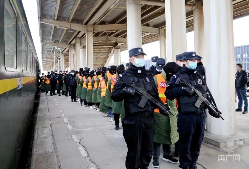 “11·20”特大电信诈骗案犯罪嫌疑人被押解回张掖(央广网发 张掖市公安局甘州分局 供图)