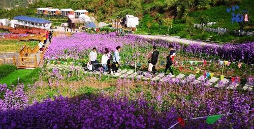 白的、红的、粉的,一团团,一簇簇,一片片,如锦缎,似彩霞,点缀在满山满野的绿色中,绚丽、亮眼。