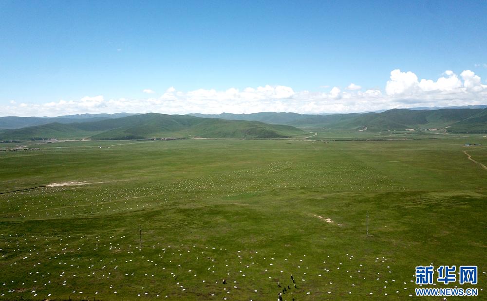 夏日里,甘肃省甘南藏族自治州玛曲县尼玛镇贡玛村的牧民们,忙着给草原牧场增肥养护,草场郁郁葱葱,长势喜人。近年来,甘南州积极探索“转场补饲+灭鼠(扫残)+平丘+种草+施肥+季节休牧”的退化草原治理模式。据2022年草原动态监测,全州中度以上退化草原面积由2004的3260万亩下降到1467.7万亩,下降54.98%,天然草原综合植被盖度达到97.01%。新华网(王生元 摄)