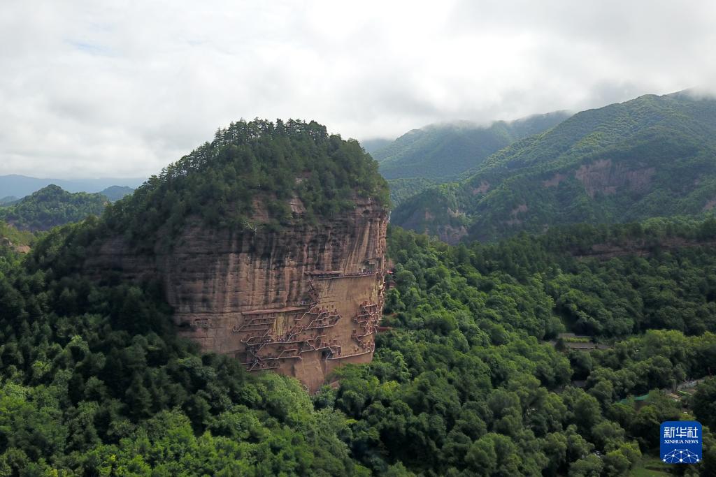 这是7月29日拍摄的麦积山石窟全景(无人机照片)。新华社记者 范培珅 摄