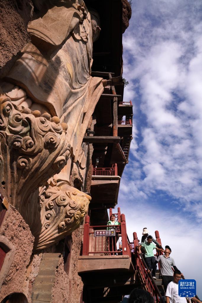 7月30日,游客在麦积山石窟参观游览。新华社记者 张可任 摄