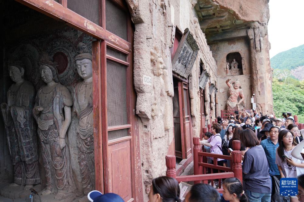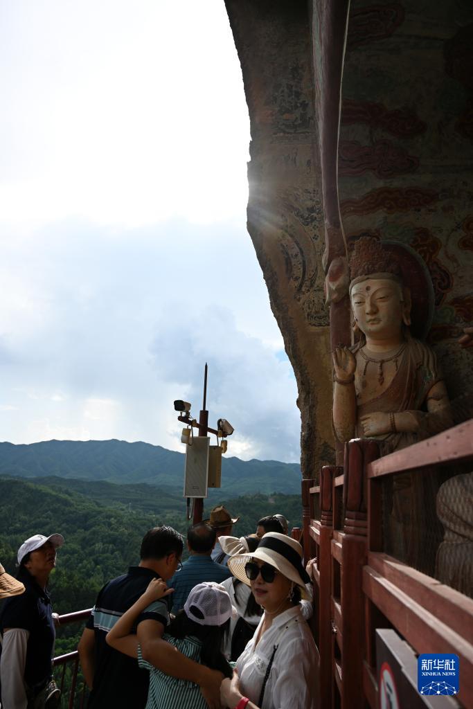 7月30日,游客在麦积山石窟参观游览。新华社记者 马宁 摄