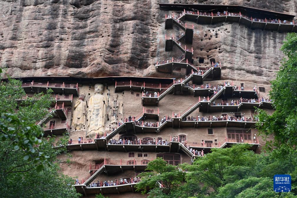 进入暑期,地处甘肃省天水市麦积区的麦积山石窟迎来旅游高峰。为保障游客与文物安全,麦积山石窟艺术研究所优化参观路线,从7月29日起至8月25日间开启路线陡峭的应急1号线和路线平缓的应急2号线两条参观线路供游客选择,以此提升游客体验。麦积山石窟是“中国四大石窟”之一,因其形似麦垛而得名,也是世界文化遗产“丝绸之路:长安-天山廊道的路网”的遗产点之一。