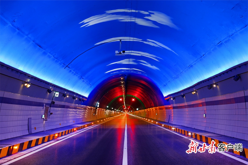 渭武高速木寨岭特长隧道内的光学景观带。