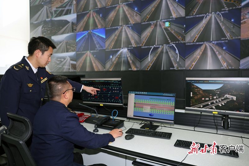 工作人员监控木寨岭特长隧道运营安全。