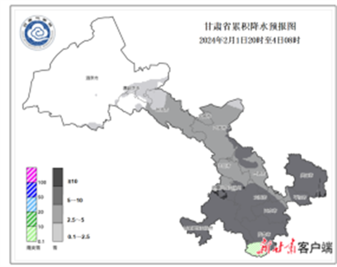 甘肃省2月1日夜间至4日累积降水量预报图(毫米)