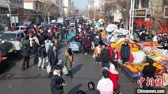 年关将近,年味愈浓。甘肃临夏州积石山县吹麻滩镇的赶集市场热闹起来,集市上摆满了各类年货商品,人头攒动,叫卖声、讨价还价声不绝于耳,民众趁着赶集前来购置年货,在烟火升腾的氛围中喜迎新年到来。