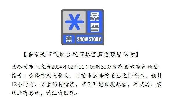 【嘉峪关市气象台发布暴雪蓝色预警信号】