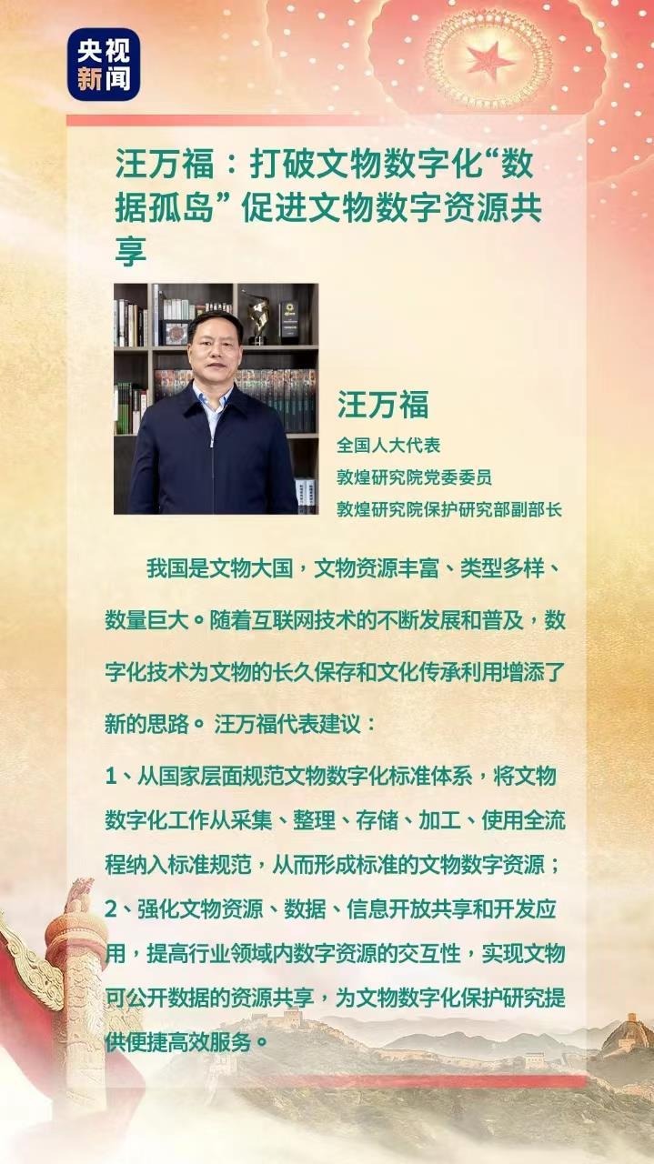 【甘快看】人大代表汪万福:打破文物数字化“数据孤岛”,促进文物数字资源共享