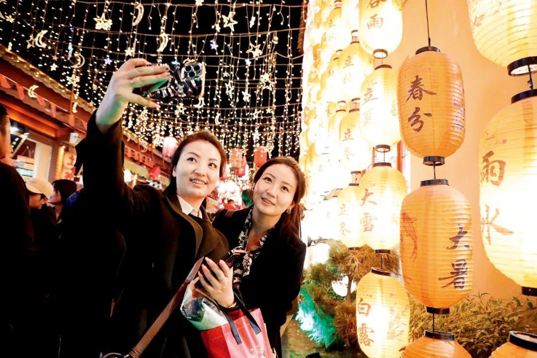 3月20日,游客在位于天水市秦州区的天水古城合影留念。图/新华