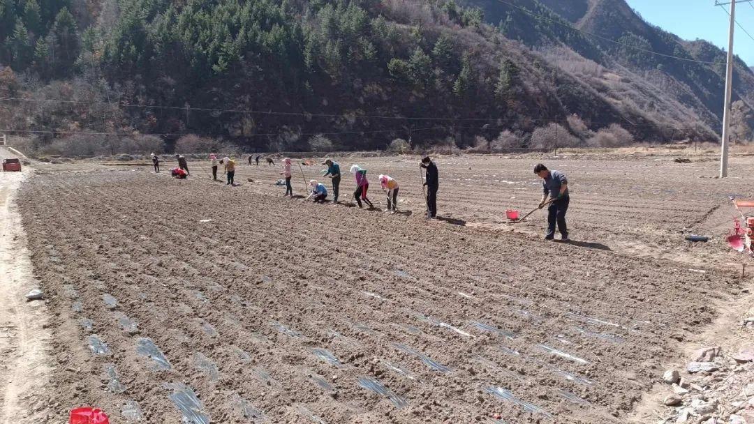 在羊沙、冶力关、八角广袤的田野上,目之所及是一幅生动且忙碌的农耕画卷,村民们正热火朝天地种植党参、当归等特色中药材,播种、覆土、覆膜,一派繁忙景象。