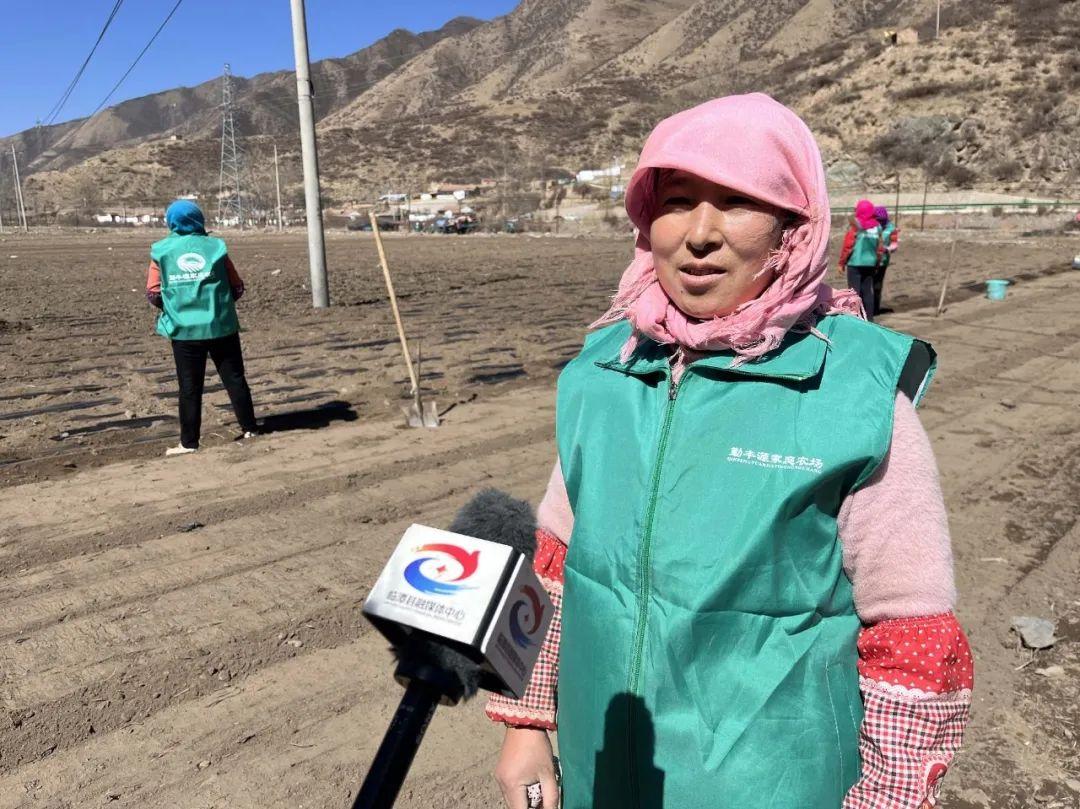 大草滩村民 温辛元:我这几天在勤丰源家庭农场里栽药材,已经栽了一星期了,一天工资120元,今年我也打算种植党参4亩,其它的大麦小麦种植10多亩。