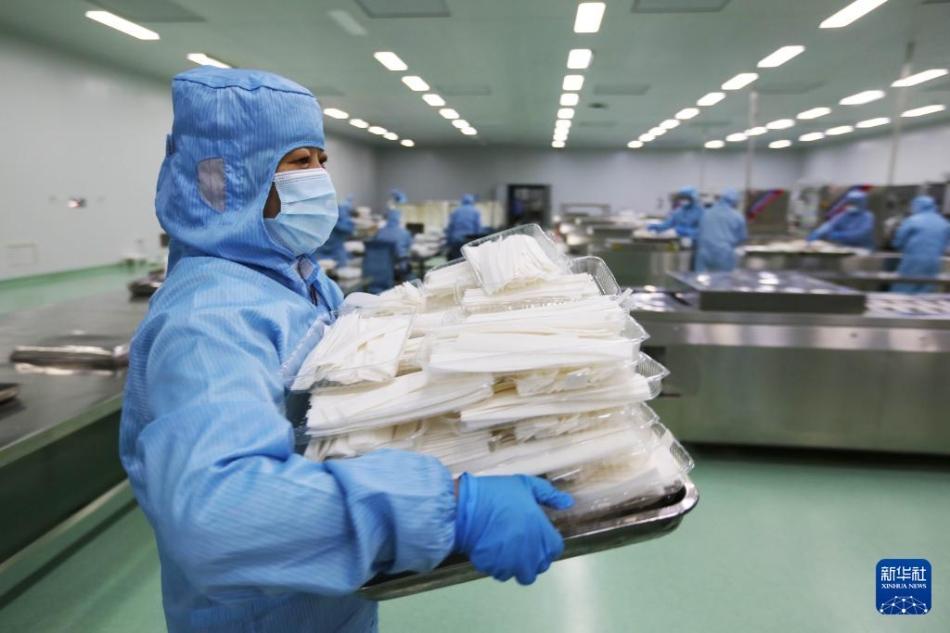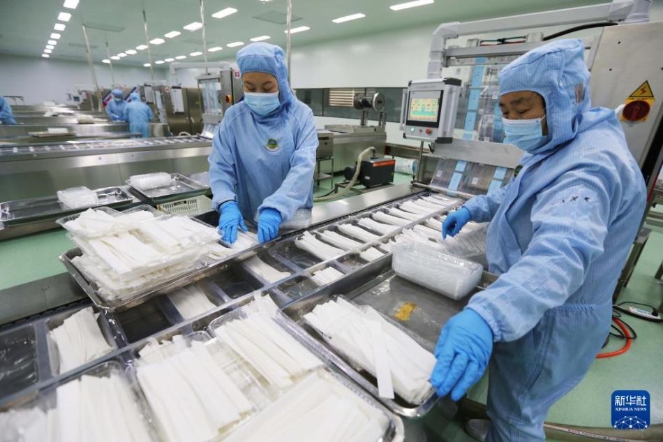 3月27日,工人在甘肃省定西市安定区巉口镇的一家“定西宽粉”加工企业的生产车间内包装“定西宽粉”系列产品。新华社发(王克贤 摄)