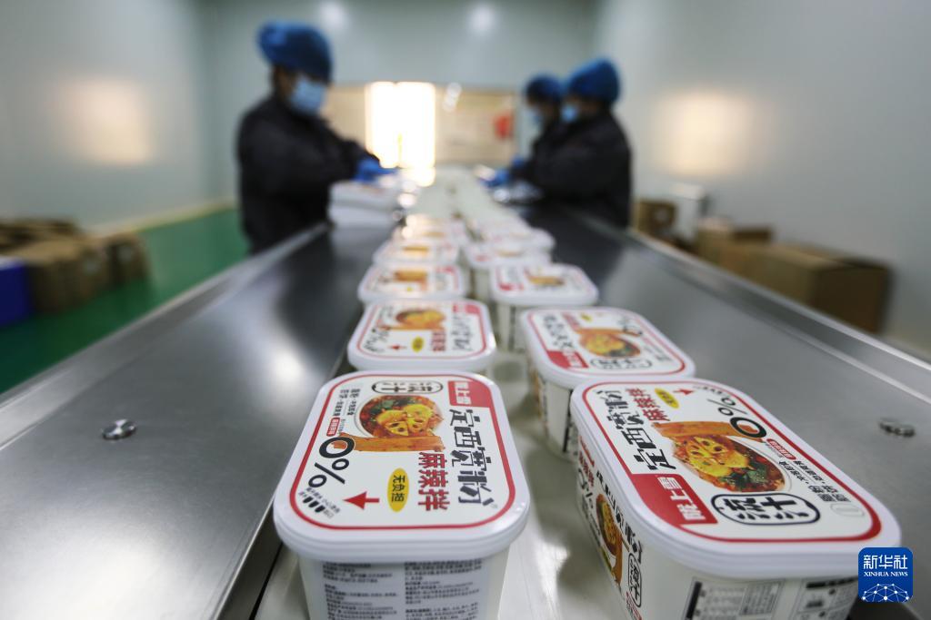 3月27日,工人在甘肃省定西市安定区巉口镇的一家“定西宽粉”加工企业的生产车间内将“定西宽粉”系列产品装箱。新华社发(王克贤 摄)