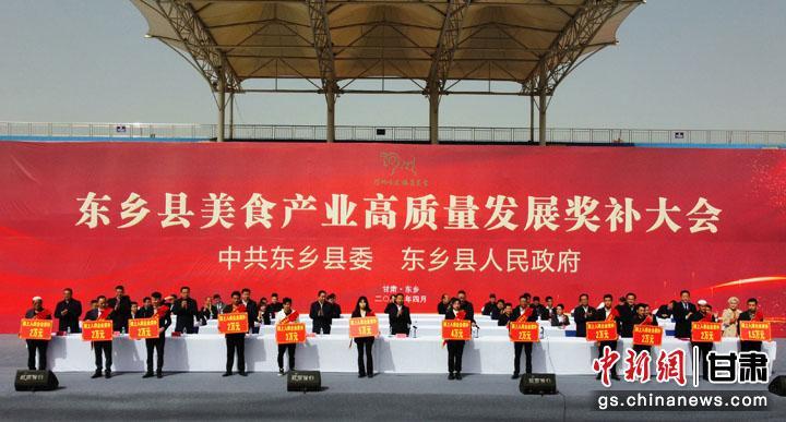 中新网甘肃新闻4月16日电 15日,甘肃省临夏回族自治州东乡县召开美食产业高质量发展奖补大会,为东乡手抓示范乡镇、美食产业示范村、最美餐饮企业、最美环境餐饮店、东乡美食代言人等乡镇、企业及人员授奖牌或发放聘书,并拿出3180.4万元落实美食产业奖补,其中对317家餐饮企业落实新建和改造提升奖补资金3111.4万元,对16家餐饮企业落实限上入库餐饮企业奖补资金33万元,对评先选优餐饮企业和个人落实奖补资金36万元。