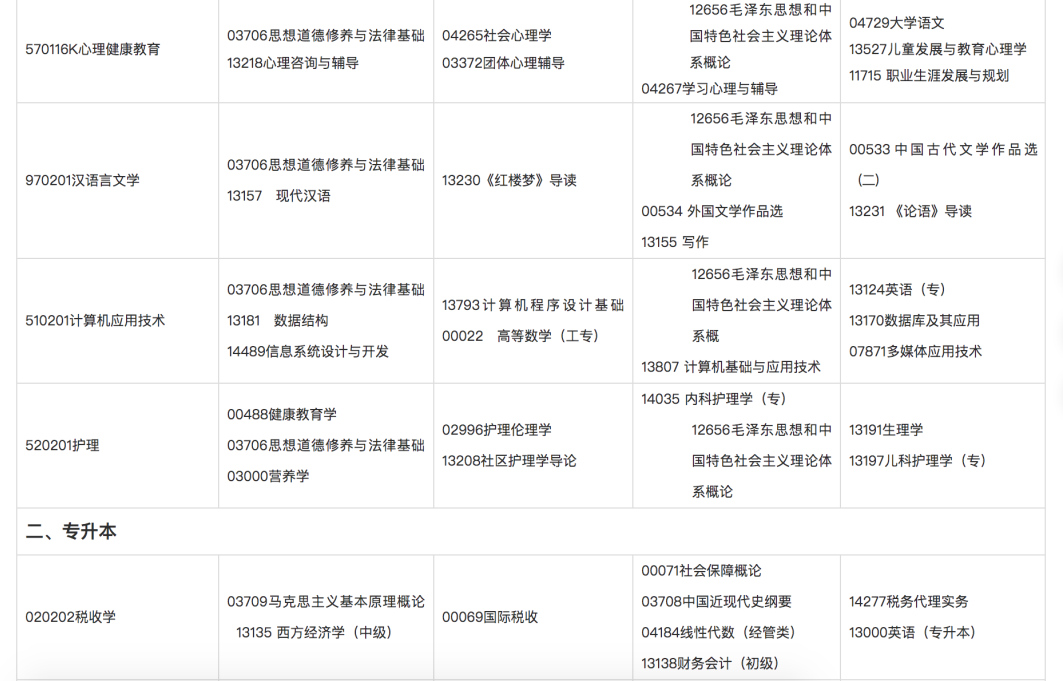 5.我省网报采取课程报考模式,考生报考界面中显示本次所有开考课程,请考生报考时务必先确定所学专业,并查实该专业的设置课程,进行课程报考。未毕业考生可使用同一个准考证号选报其他专业的课程,达到该专业毕业条件可申请毕业。