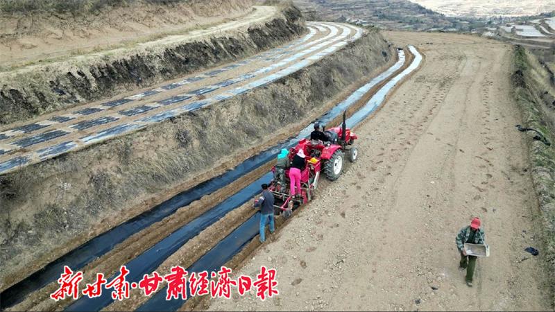 为了让农民能耕种方便、积极种粮,镇上全面落实旱作农业基地建设、绿色种养循环农业试点及社会化服务等项目,在该基地配套修建产业路8条9.2公里,沙化道路5.6公里,并提供地膜、肥料、种子等扶持保障,进一步夯实了产业基础。这一切让苏新旺看在了眼里,这几年开始流转耕地种植马铃薯。“我今年流转土地是680亩,种植马铃薯种薯270亩,现在效益也可观。乡上技术人员对整地、覆膜、种植全过程进行技术服务指导,这一段时间下了雨,墒情好,每天有30人参与种植,准备在半个月之内把种薯种完。”庄浪县飞耀种植家庭农场负责人苏新旺说。