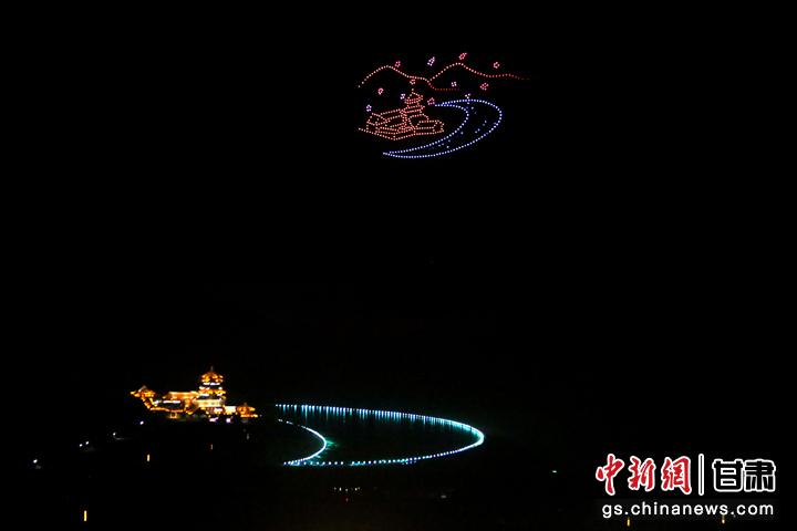 4月中旬晚,甘肃省敦煌市鸣沙山月牙泉景区夜空上演了一场以“春到敦煌”为主题的精彩无人机灯光秀。现场描绘出了飞天、九色鹿、骆驼、鸣沙山、月牙泉等敦煌元素的画面,闪耀夜空,绚丽多彩,与鸣沙山月牙泉交相辉映,美丽迷人,给游客带来一场科技感与艺术感十足的视觉文化盛宴。(张晓亮 张文瑾)