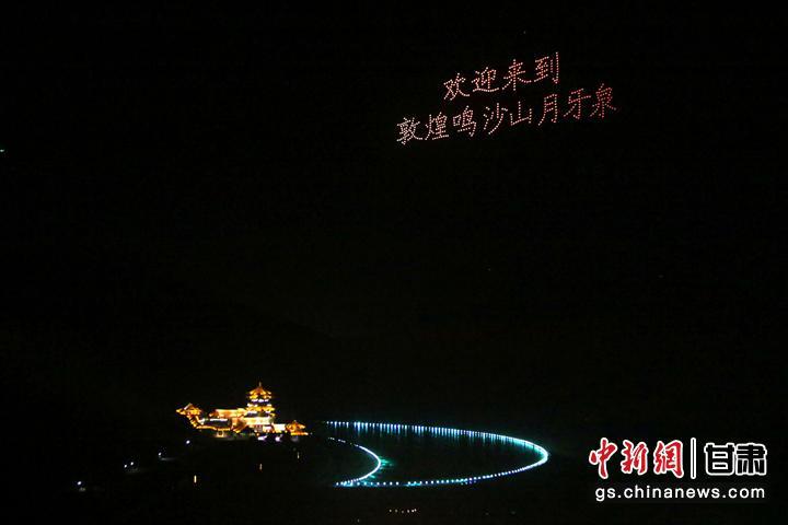 【甘快看】敦煌鸣沙山月牙泉景区夜空上演无人机灯光秀