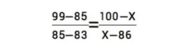 举例说明:假如小王的地理科目原始成绩为85分,在当年全省参加该科目考试的考生中位于前2.5%,根据上表,该成绩位列A等级,该等级的赋分区间为100-86分。根据考生原始成绩的分布,可知A等级的原始分数区间(假设为99-83分),那么小王地理科目的赋分成绩(X)可通过如下公式计算: