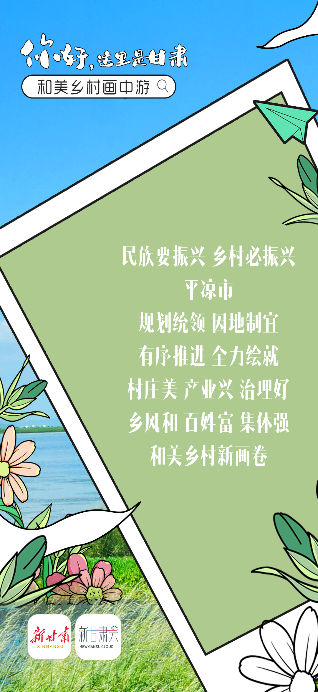 新甘肃客户端通过甘肃省融媒体省级技术平台“新甘肃云”联动省内县(区)融媒体中心,联合推出特别策划《【你好,这里是甘肃】和美乡村画中游》海报,展现甘肃平凉如画乡村的生动场景。每张海报的二维码均关联对应地方的相关新闻,欢迎大家长按二维码查看详情。