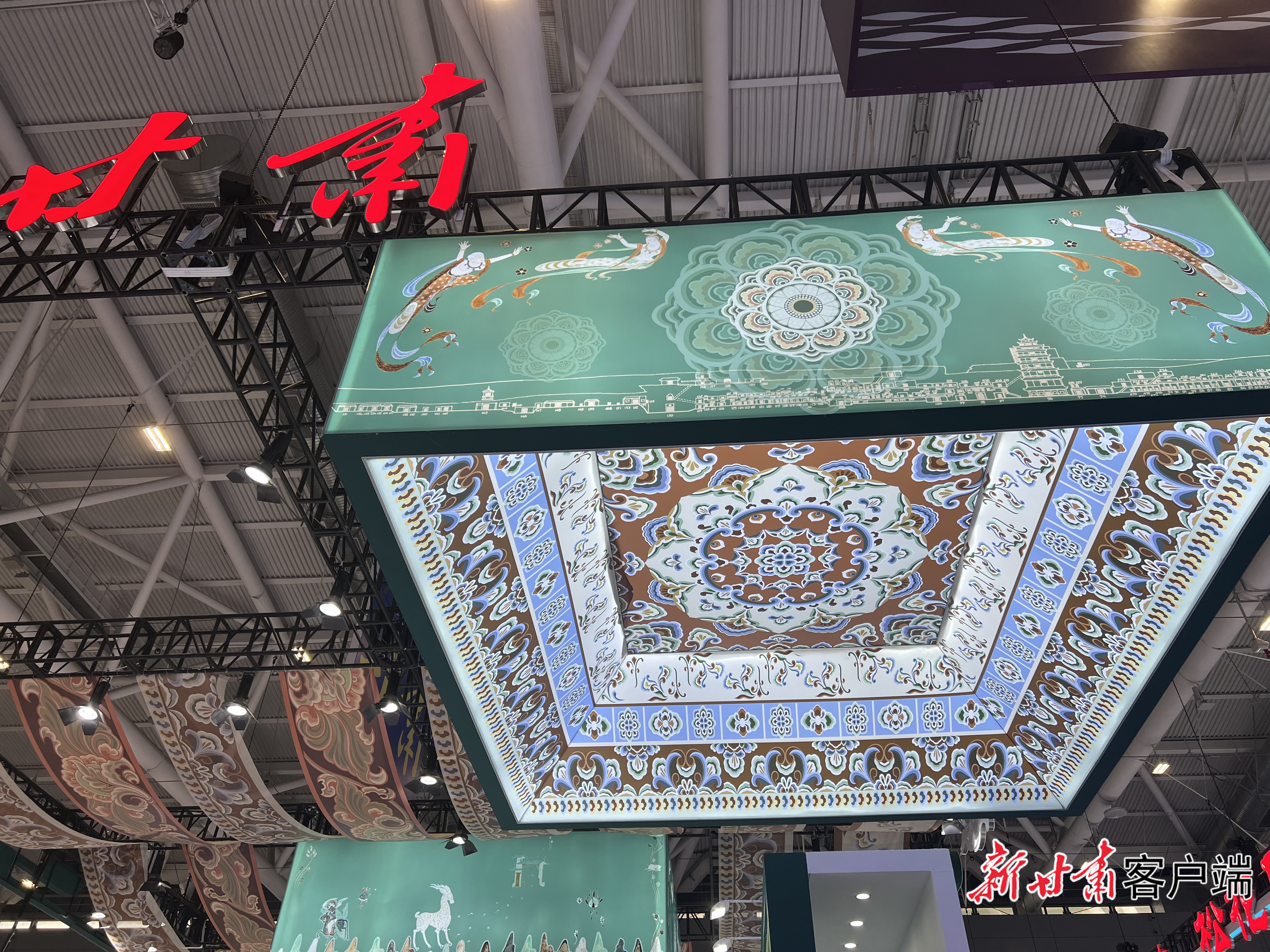 甘肃馆采用敦煌壁画中石绿为主色调。