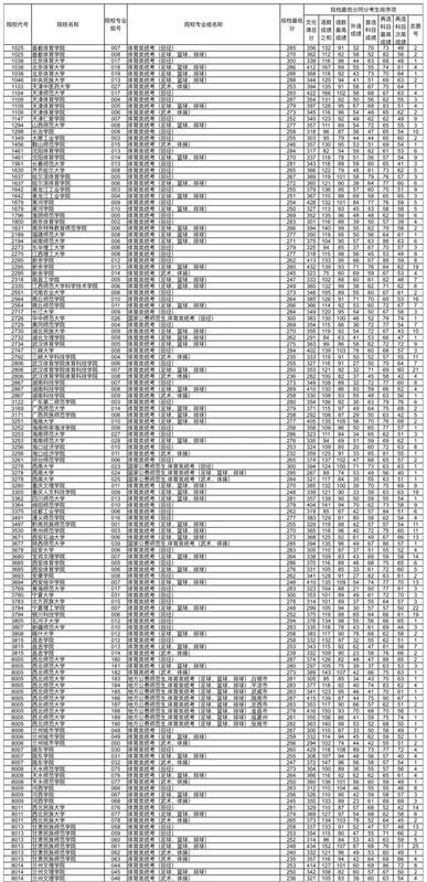 体育类本科批(H段)投档最低分