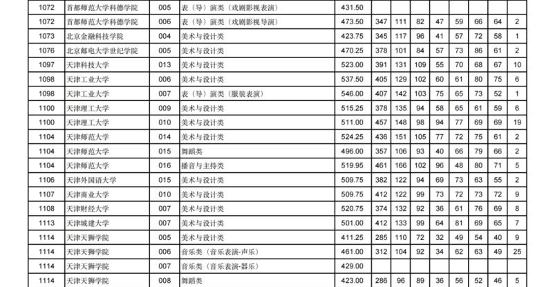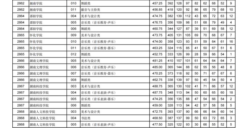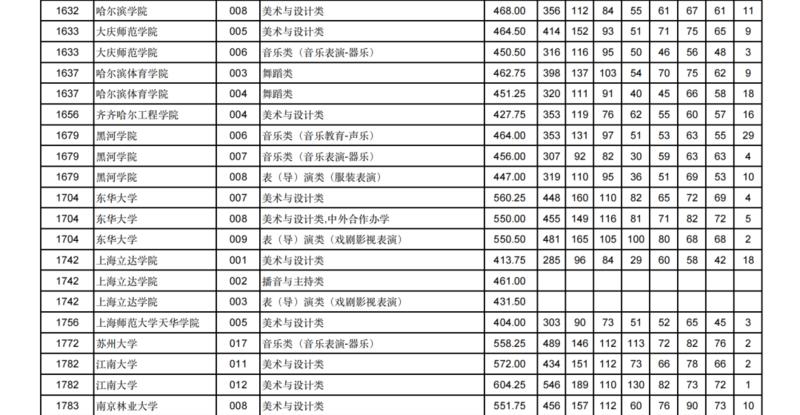 艺术类本科批(H段)投档最低分