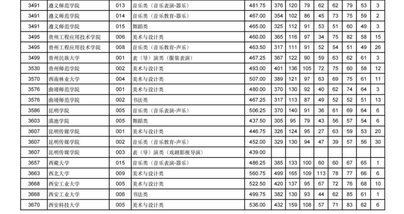 艺术类专业除播音与主持类外,其他专业类别排序成绩计算公式如下: