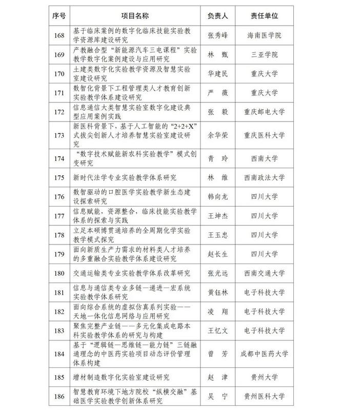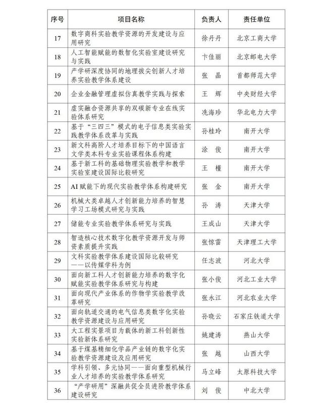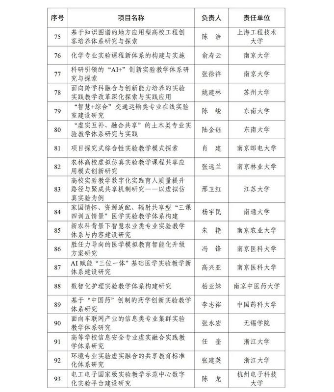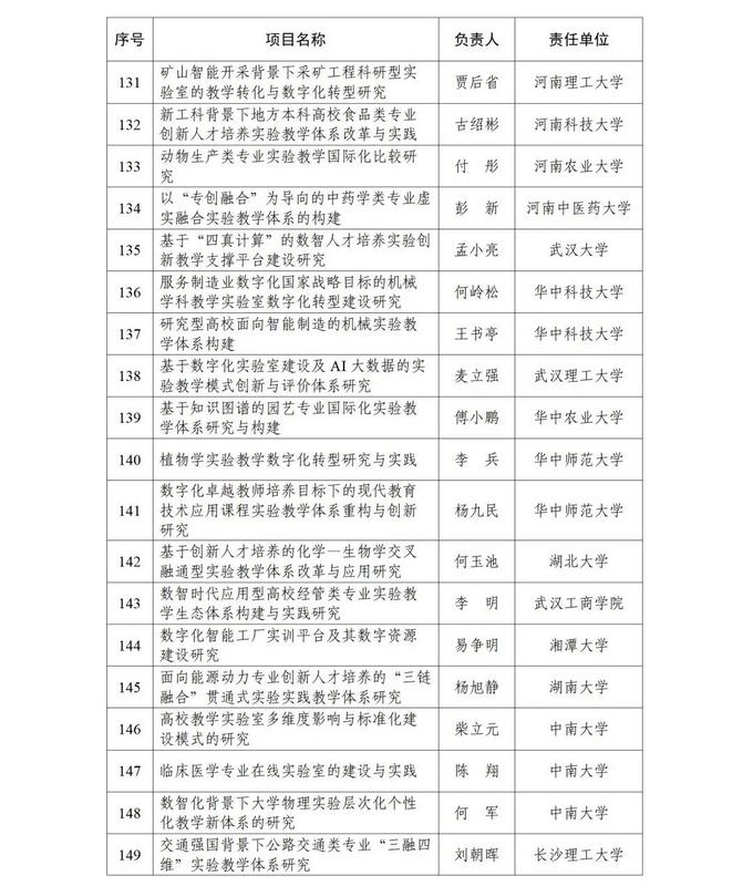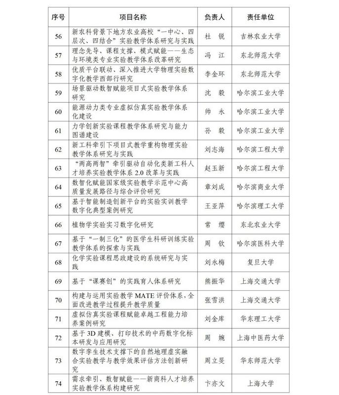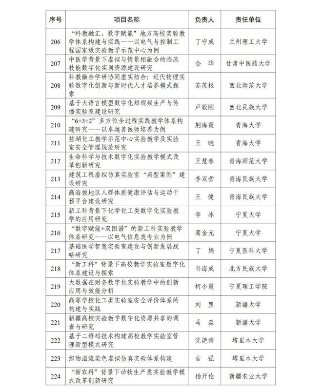 根据《教育部高等教育司关于开展实验教学和教学实验室建设研究工作的通知》(教高司函〔2024〕1号)要求,经各省级教育行政部门和有关专家组织遴选推荐等工作流程,现公布实验教学和教学实验室建设研究项目立项名单(见附件)。